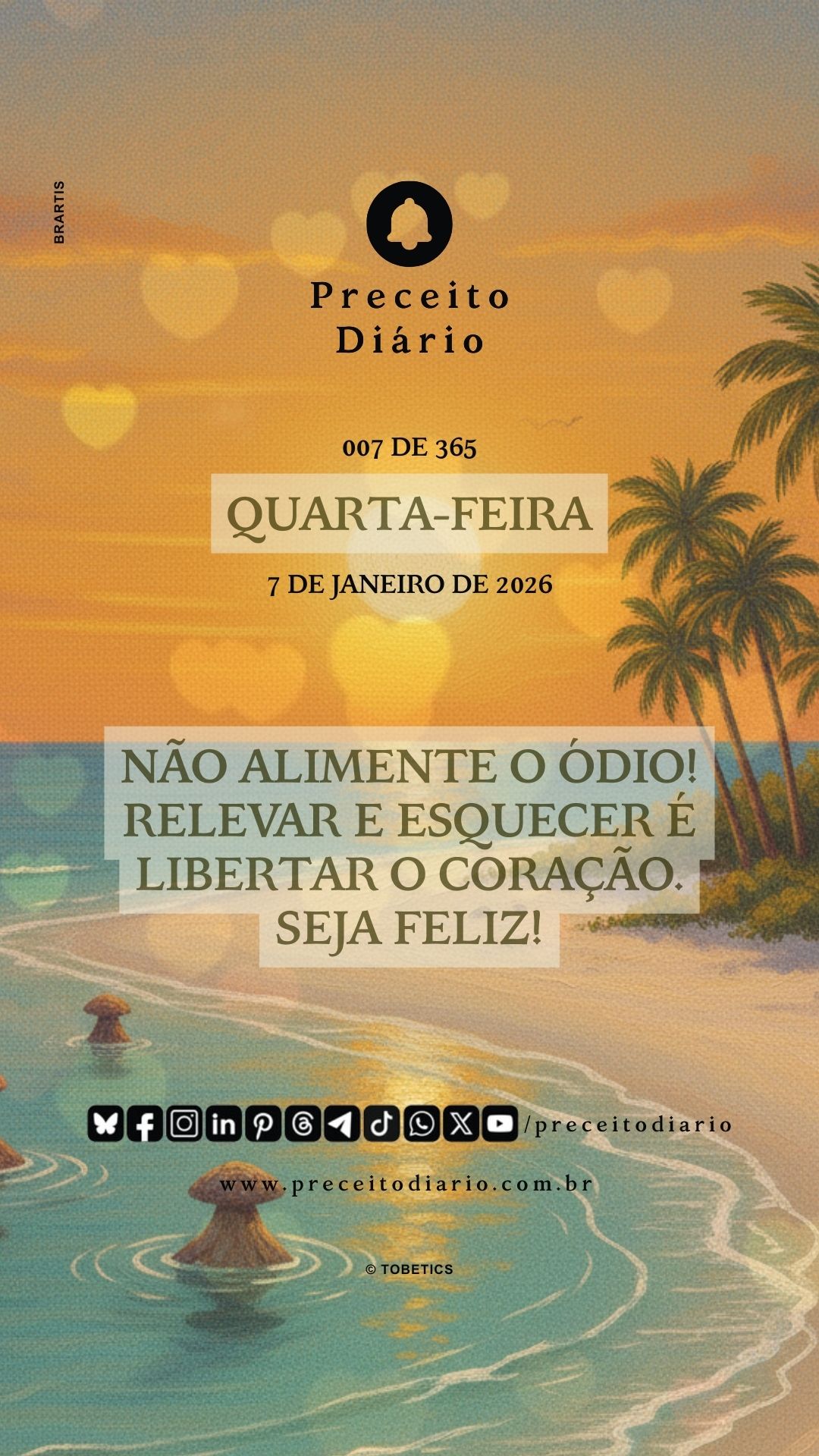Não alimente o ódio! Relevar e esquecer é libertar o coração. Seja feliz!