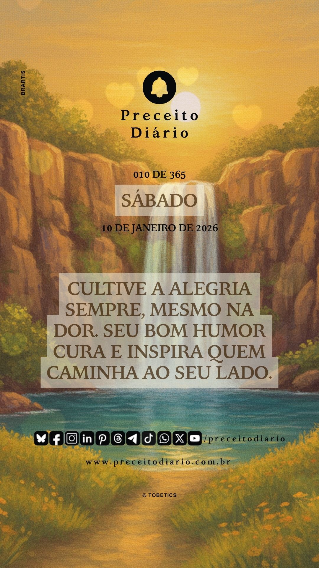 Cultive a alegria sempre, mesmo na dor. Seu bom humor cura e inspira quem caminha ao seu lado.