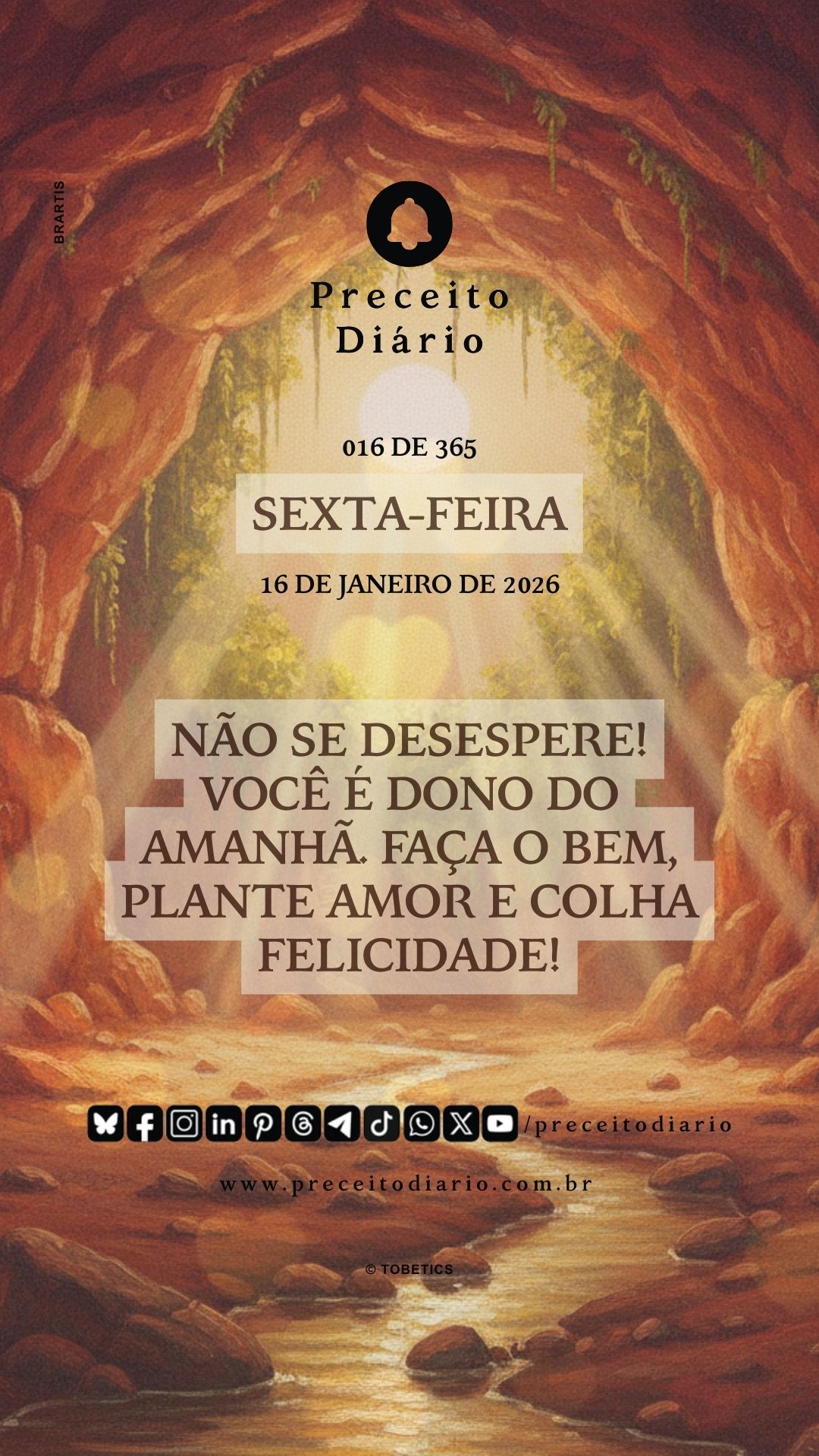 Não se desespere! Você é dono do amanhã. Faça o bem, plante amor e colha felicidade!