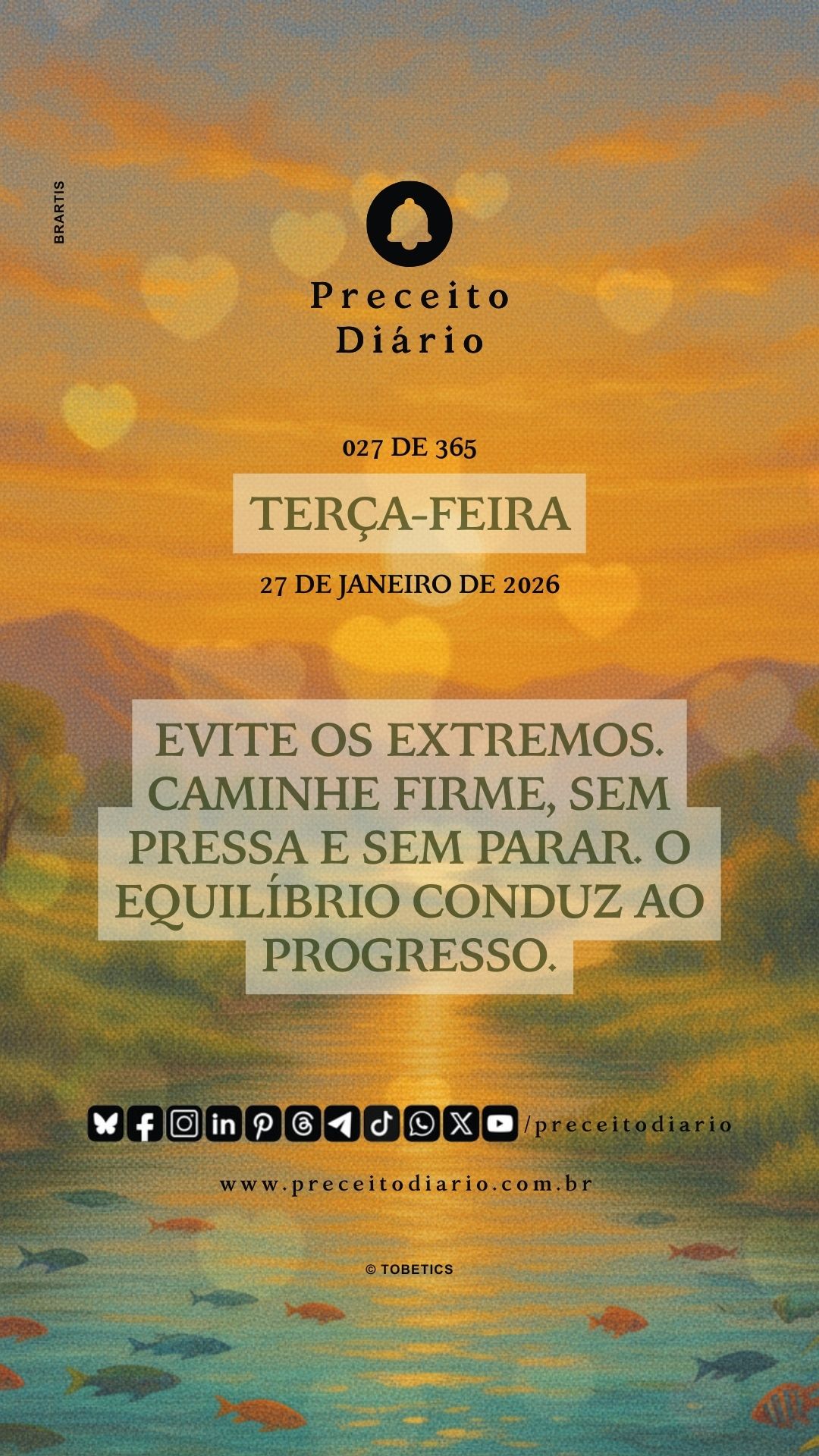 Evite os extremos. Caminhe firme, sem pressa e sem parar. O equilíbrio conduz ao progresso.